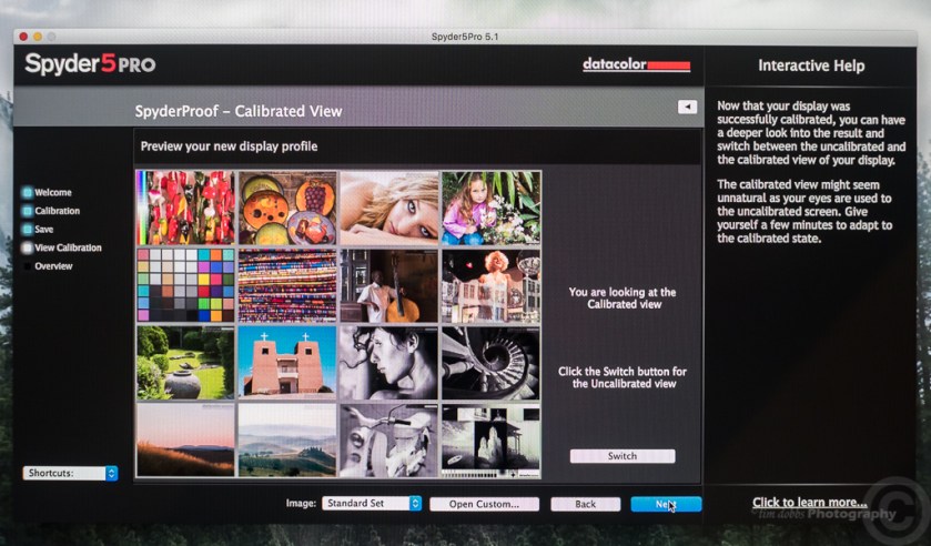 The software guides you every step of the way…All you have to do is follow along and change a few monitor settings and you are done in a matter of minutes…You then save the new profile and the final screens will show you the before and after views …The best thing is if you have multiple computers when you calibrate each one you know that when you are editing/viewing the same picture on each computer you will get the same look and then when you save the image with the embedded profile and send it to the printer or out to a lab you know that the image will be reproduced pretty damn close to how it appeared on your screen (obviously it depends on the output device matching the colour gamut of the profile you used).